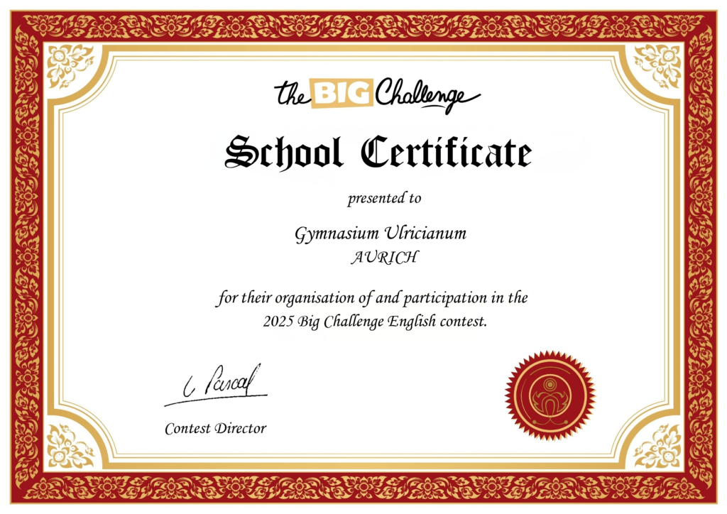 So findet in jedem Schuljahr der Englischwettbewerb The Big Challenge statt, an dem Schüler der 5.-9.Klassen teilnehmen und tolle Preise gewinnen können.